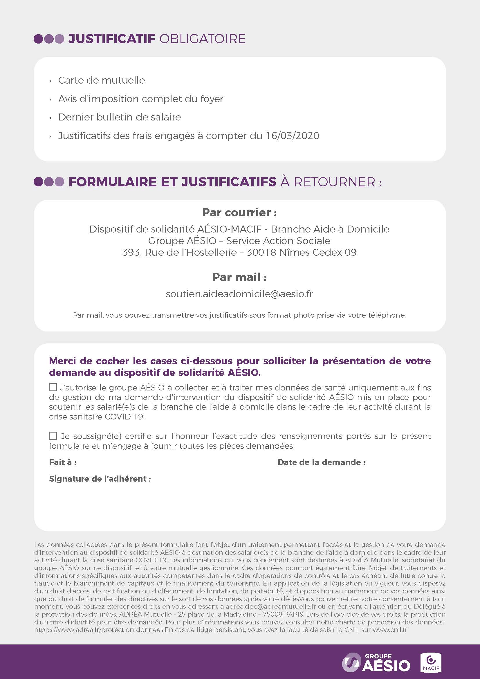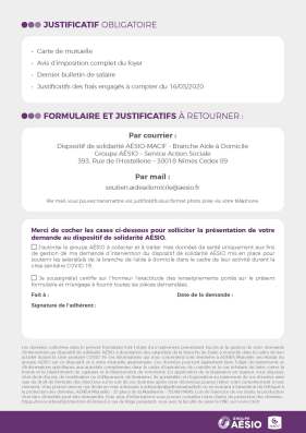Si vous pouvez bénéficier de cette aide, il faudra remplir le document ci-joint et le transmettre avec les justificatifs à AESIO ou la MACIF.