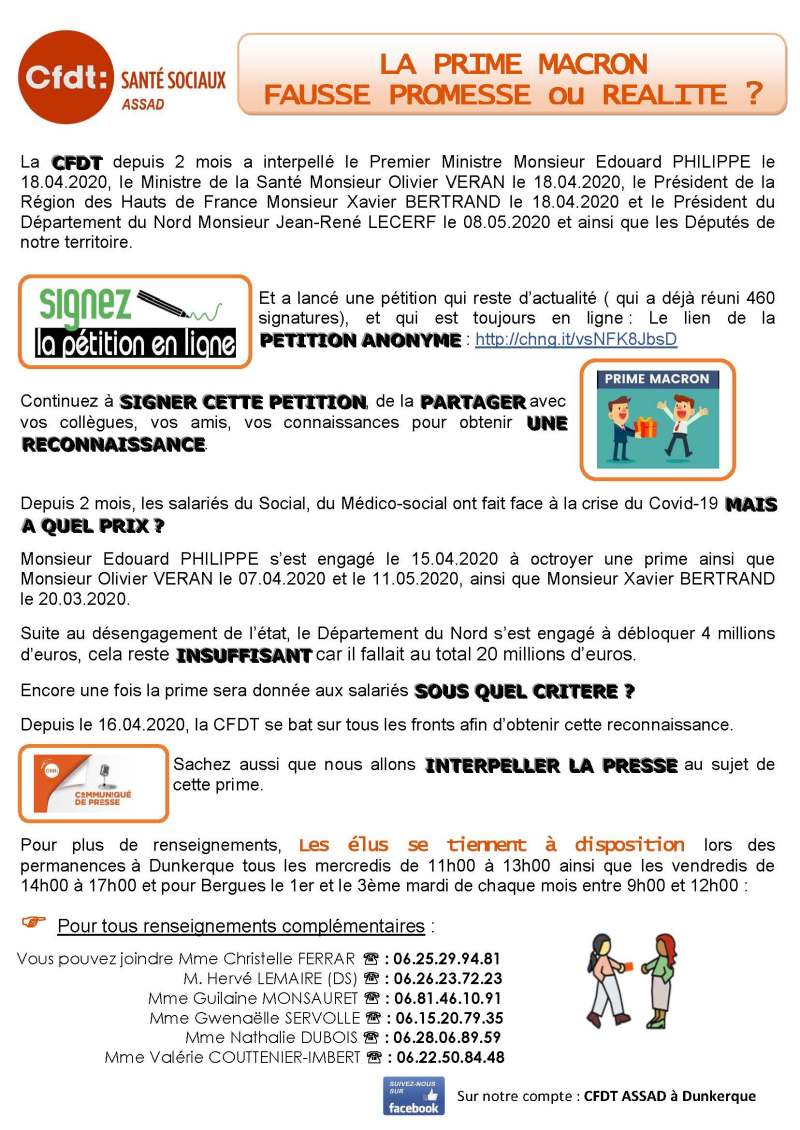 Les élus CFDT ont transmis un NOUVEAU tract pour la Prime MACRON auprès des salariés de l’association ASSAD à Dunkerque.