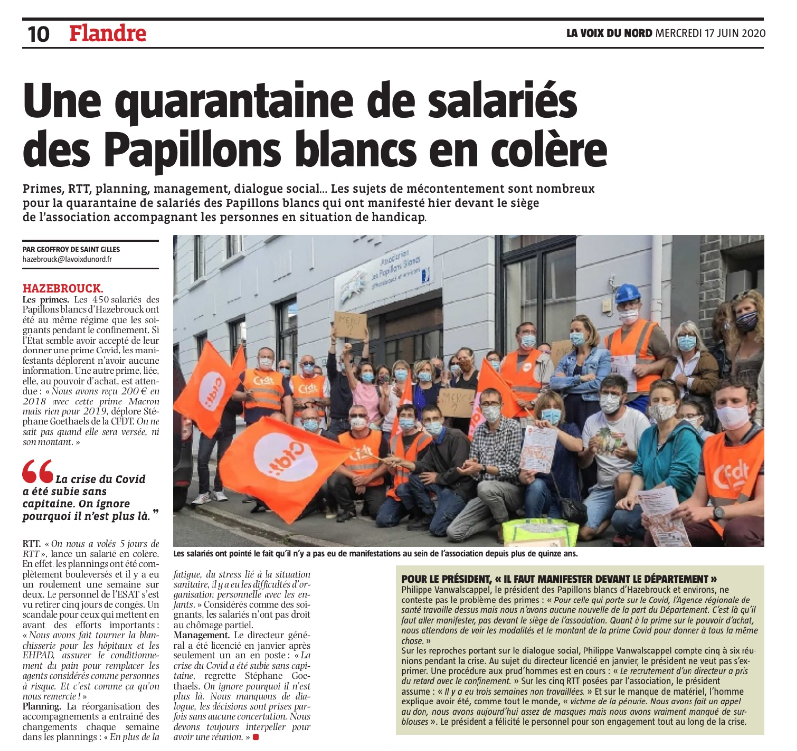 Veuillez trouver ci-dessous un article de la Voix du Nord du Mercredi 17 Juin 2020, suite à la mobilisation du 16 Juin 2020.