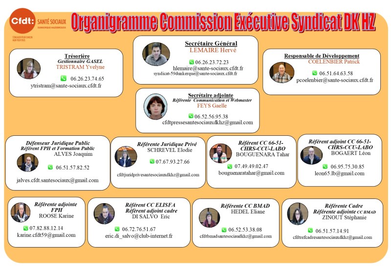 Organigramme Commission Exécutive 2021 du Syndicat Départemental Santé Sociaux Dunkerque-Hazebrouck