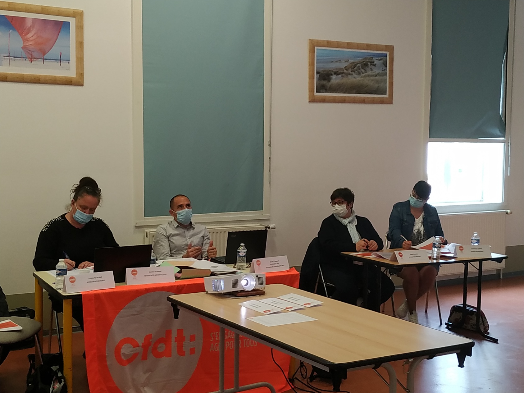 La réunion a été animée par Joaquim ALVES, Référent Fonction Publique Hospitalière et Karine ROOSE Référente Adjointe FPH du Syndicat Départemental en présence du Secrétaire Général Hervé Lemaire du syndicat départemental santé sociaux Dunkerque Hazebrouck.