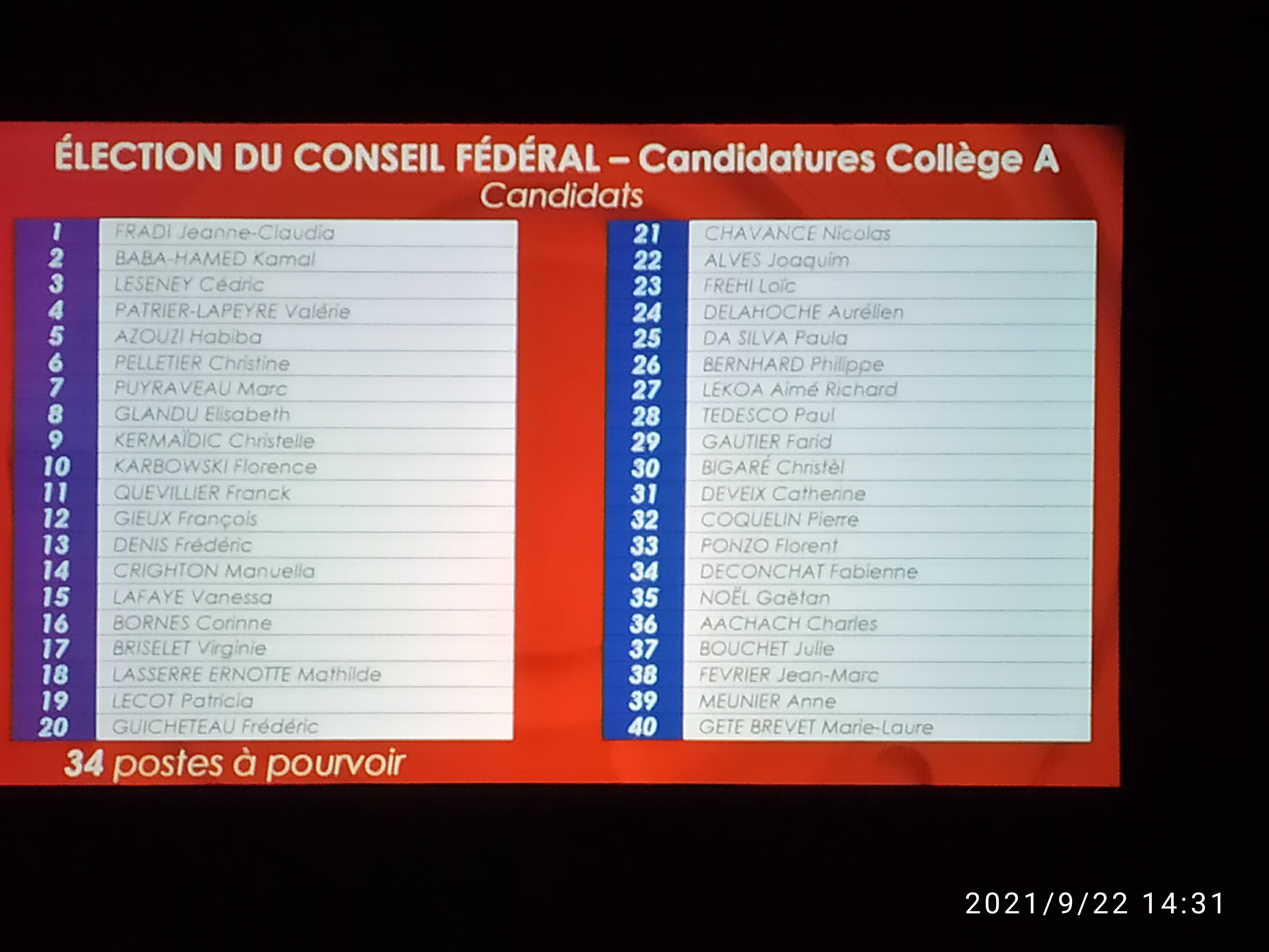Il y avait pour le collège A 40 candidats pour 34 postes, pour le collège B 9 candidats pour 6 postes et pour le collège C 8 candidats pour 8 postes.