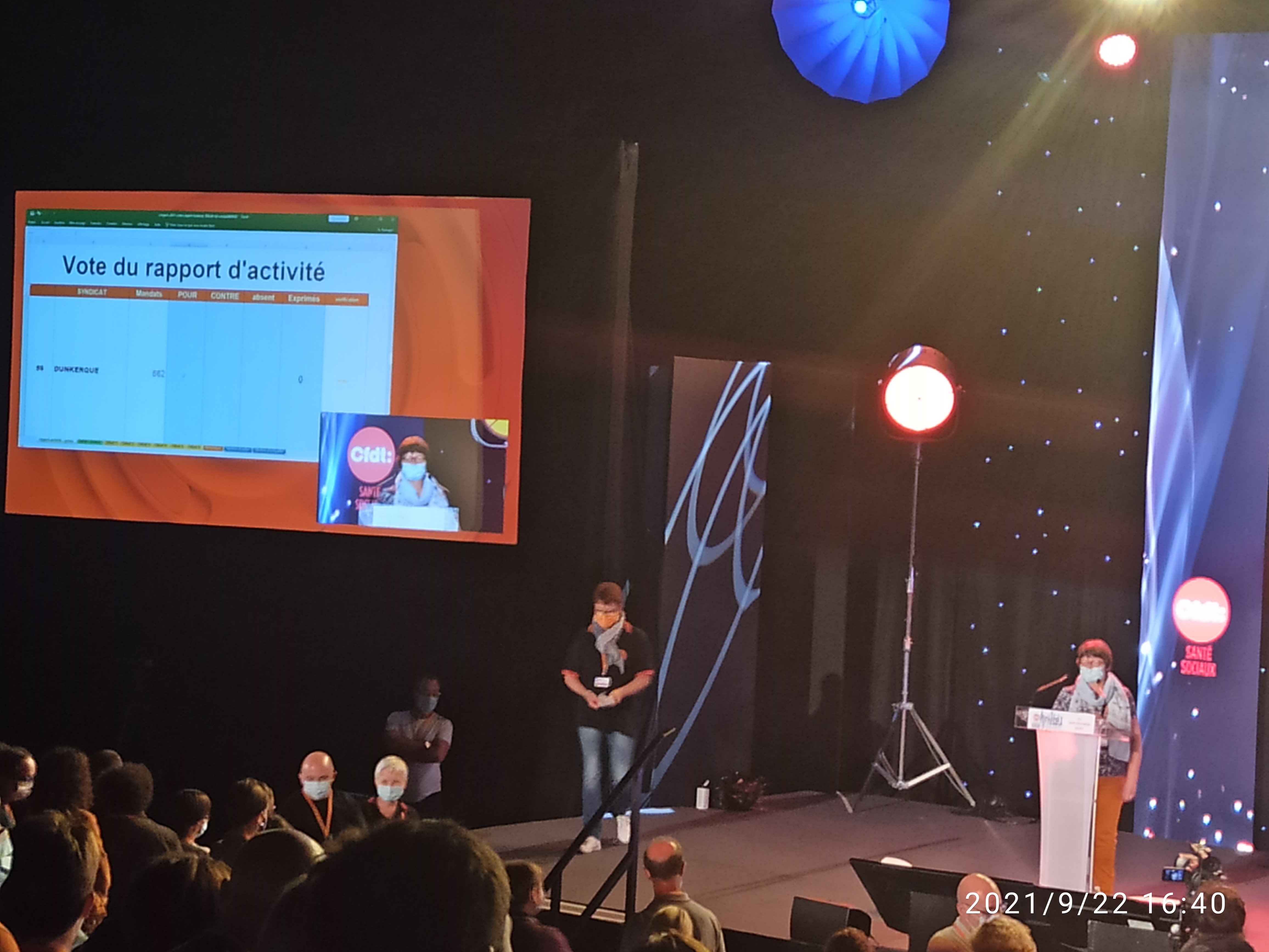 En ce 1er jour d’Automne, notre délégation ,sous l’égide d’ Eliane H, Valérie L, Joaquim A, & Hervé L,lors de la seconde journée du Congrés Fédéral Santé Sociaux à Bourg En Bresse, a été à l’écoute d’Eve RESCANIERES pour ses réponses apportées aux remarques et interventions sur le rapport d’activité 2017-2021.