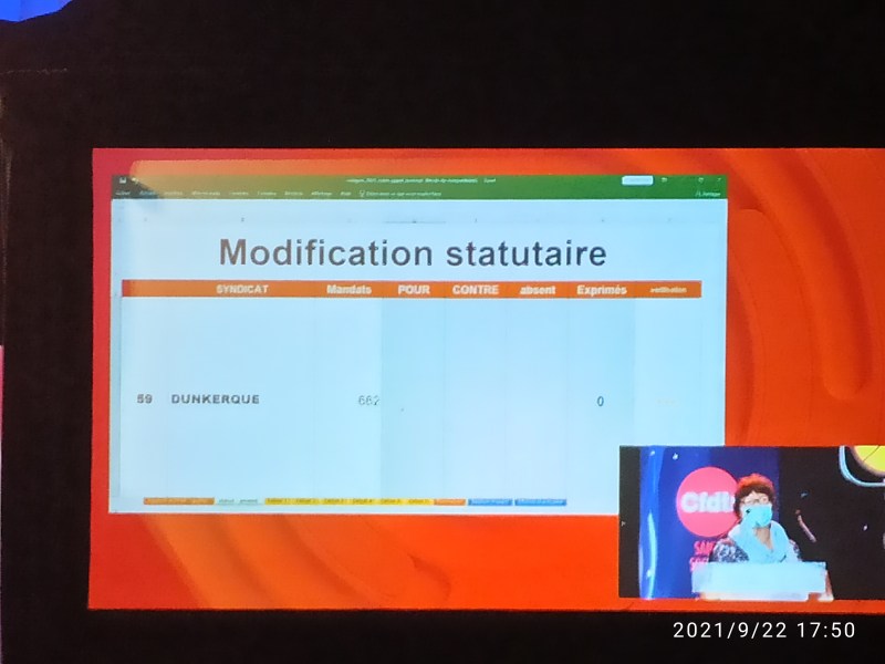 Eliane HEDEL est montée, à son tour à la tribune, pour évoquer les choix de notre syndicat ( travaillés lors du dernier BS du Lundi 14 Septembre) pour les votes du rapport d’activité ( Voté à 100%) ainsi que sur les amendements des différents syndicats de France sur les statuts.