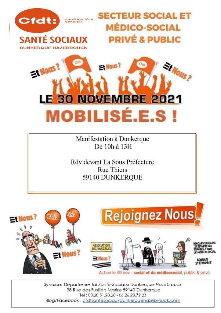 Nous vous invitons tous à nous rejoindre le 30 Novembre, de 10h à 13h devant la Sous préfecture de Dunkerque, afin de démontrer à L’Etat et nos Employeurs, que les professionnels du secteur Social et Médico-Social ne sont pas des INVISIBLES!!!!