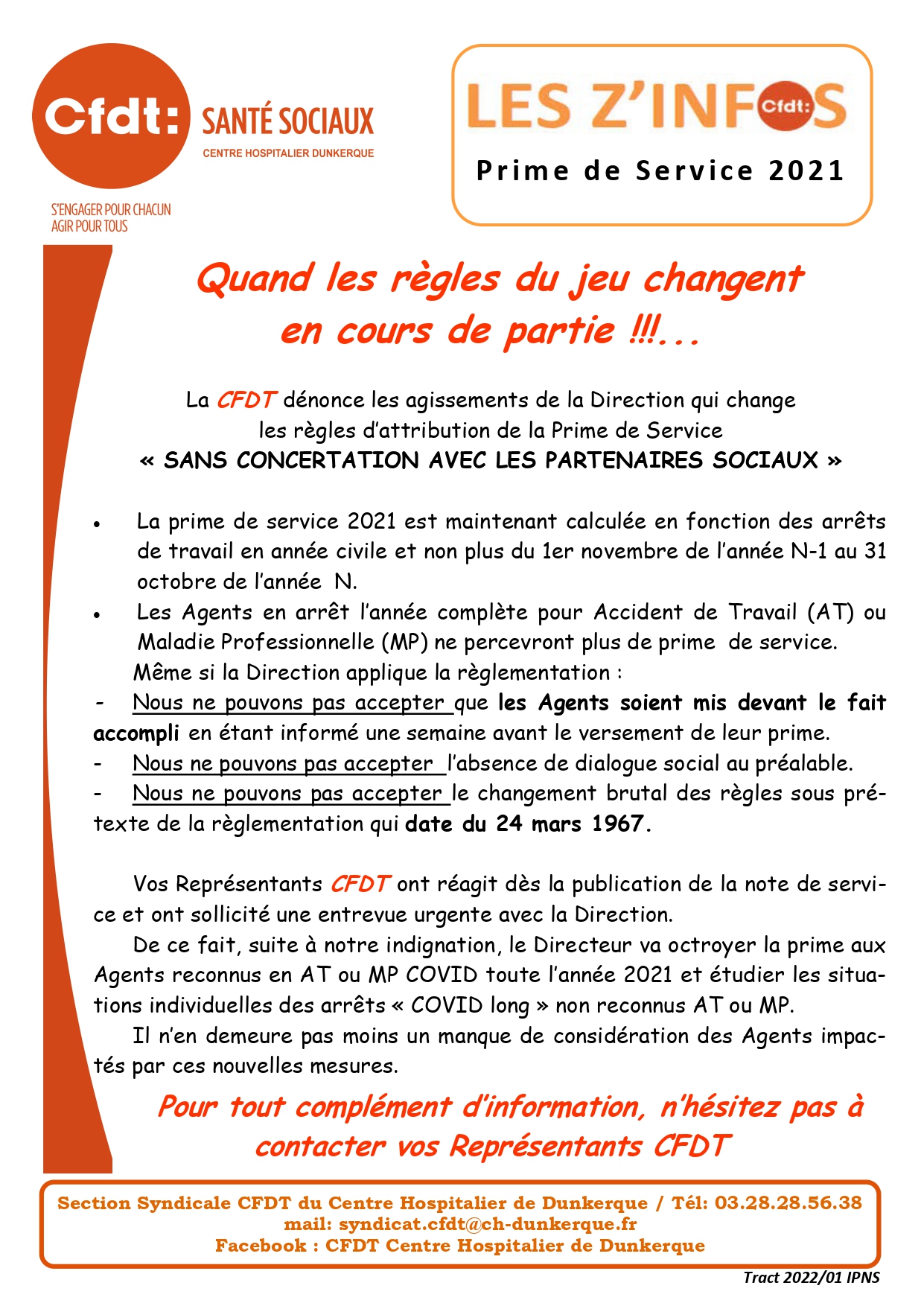 La direction du CHD a décidé, de manière unilatérale, de revoir les règles d’attribution de la prime de service pour l’année 2021.