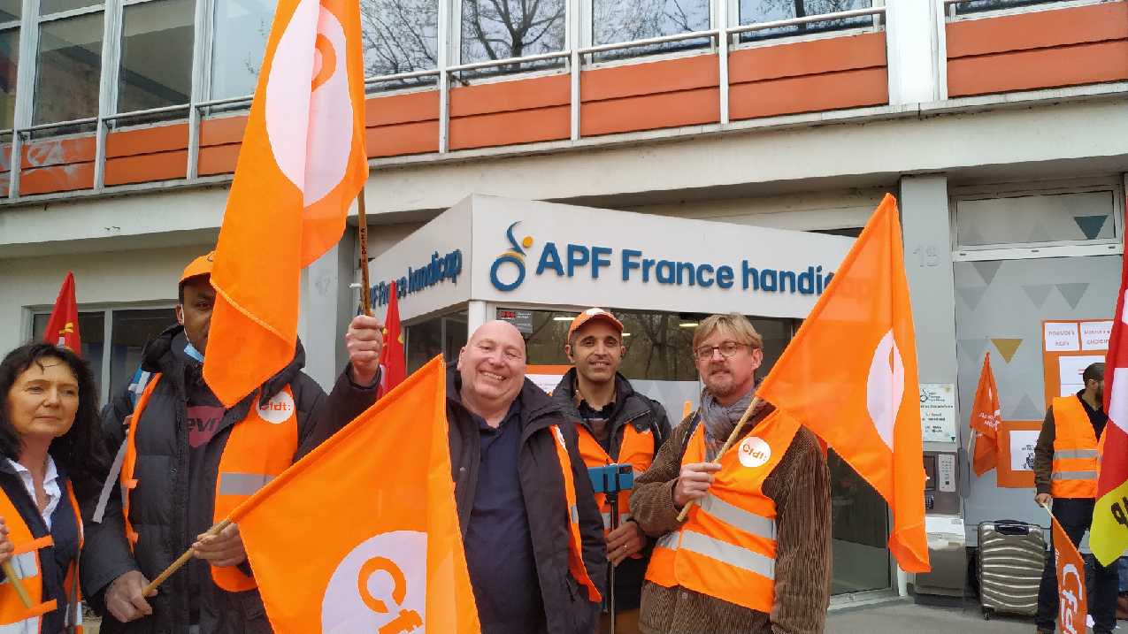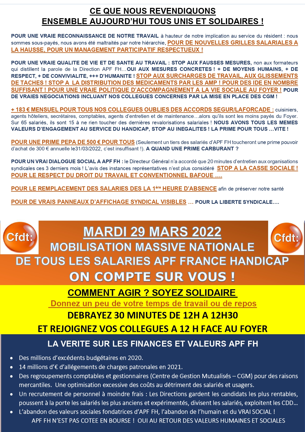 Ce mardi 29 mars les salariés de l’APF se sont mobilisés aussi bien à Paris devant le siège que devant le Foyer Les Salines à St pol!!