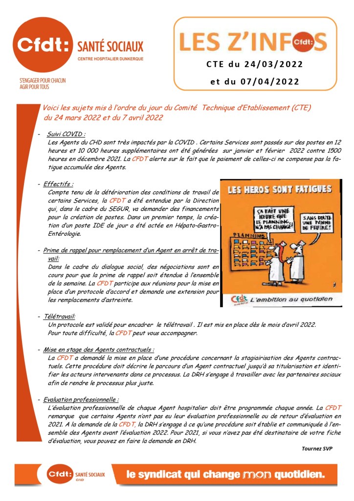 Les Z’infos du CTE au CHD en date du 24 mars et du 7 avril