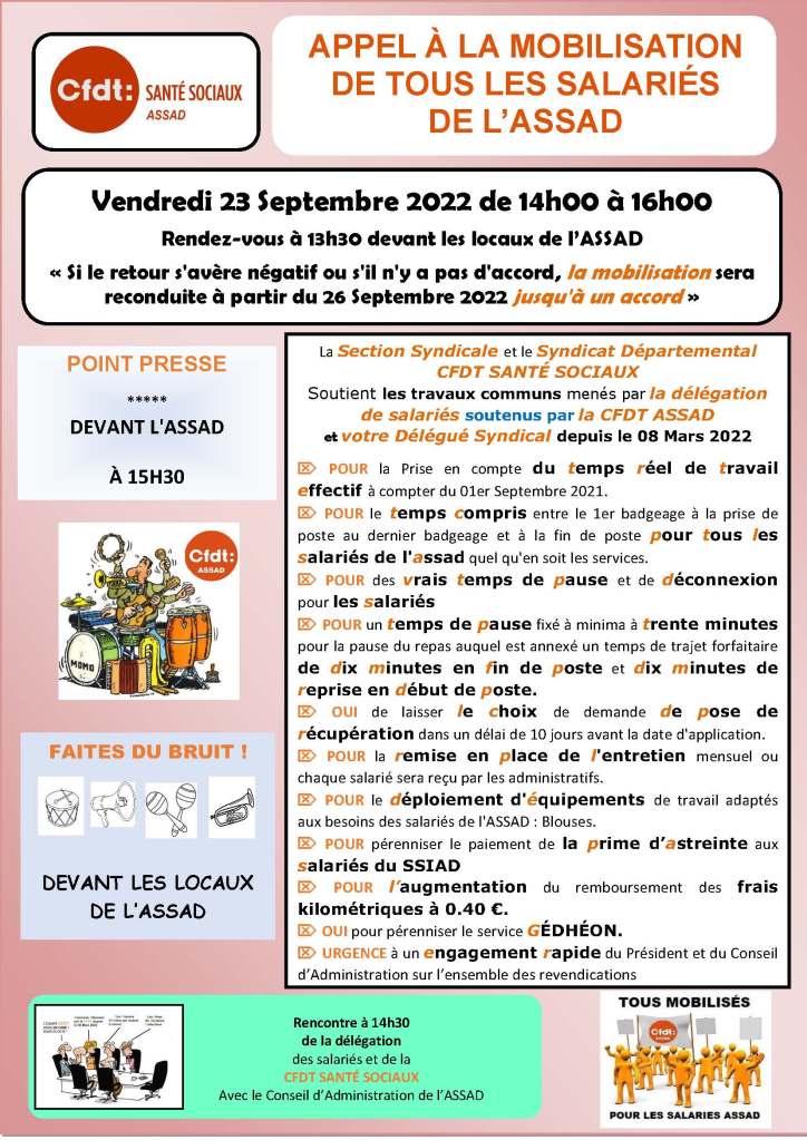 Nouvelle Grève à l’ASSAD, le Vendredi 23 Septembre à 14h, devant les locaux , rue de Furnes à Dunkerque.