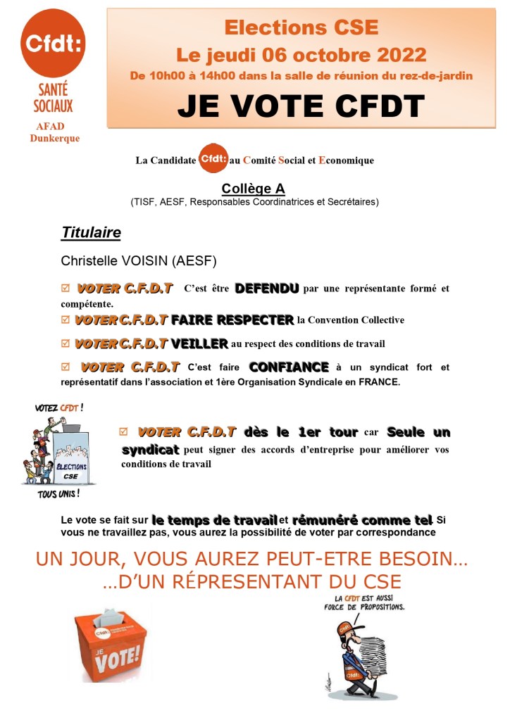 Elections CSE , le jeudi 6 octobre à L’AFAD.