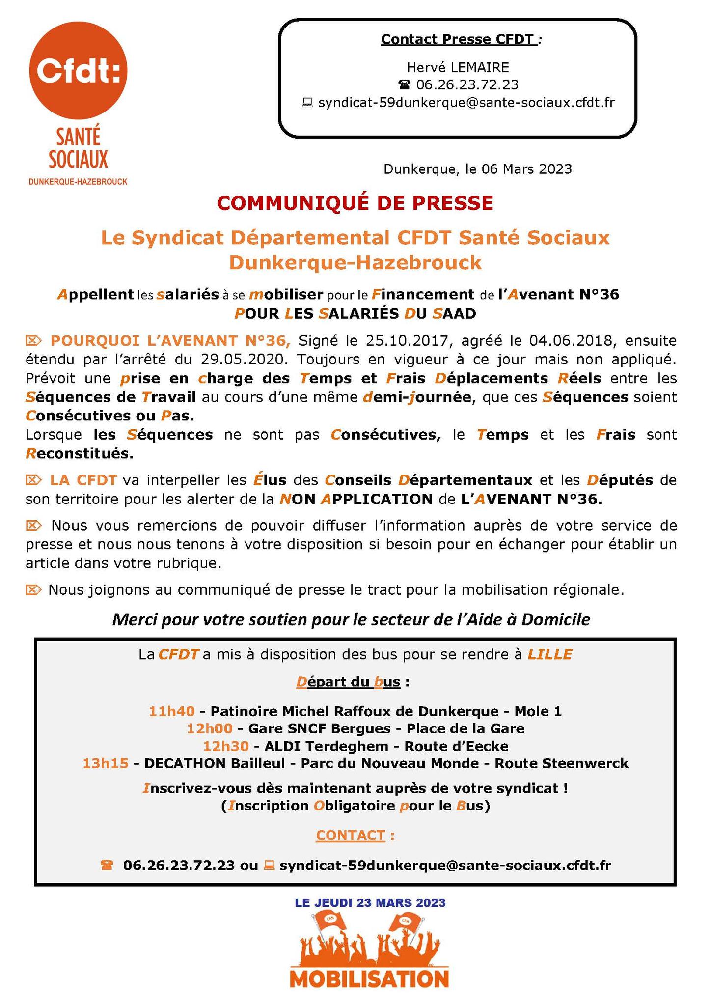 Le Syndicat Départemental CFDT Santé Sociaux Dunkerque-Hazebrouck appellent les Salariés à se MOBILISER pour le Financement de l’Avenant N°36 pour les Salariés du SAAD