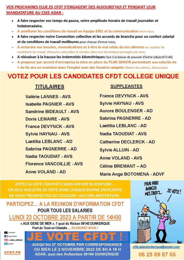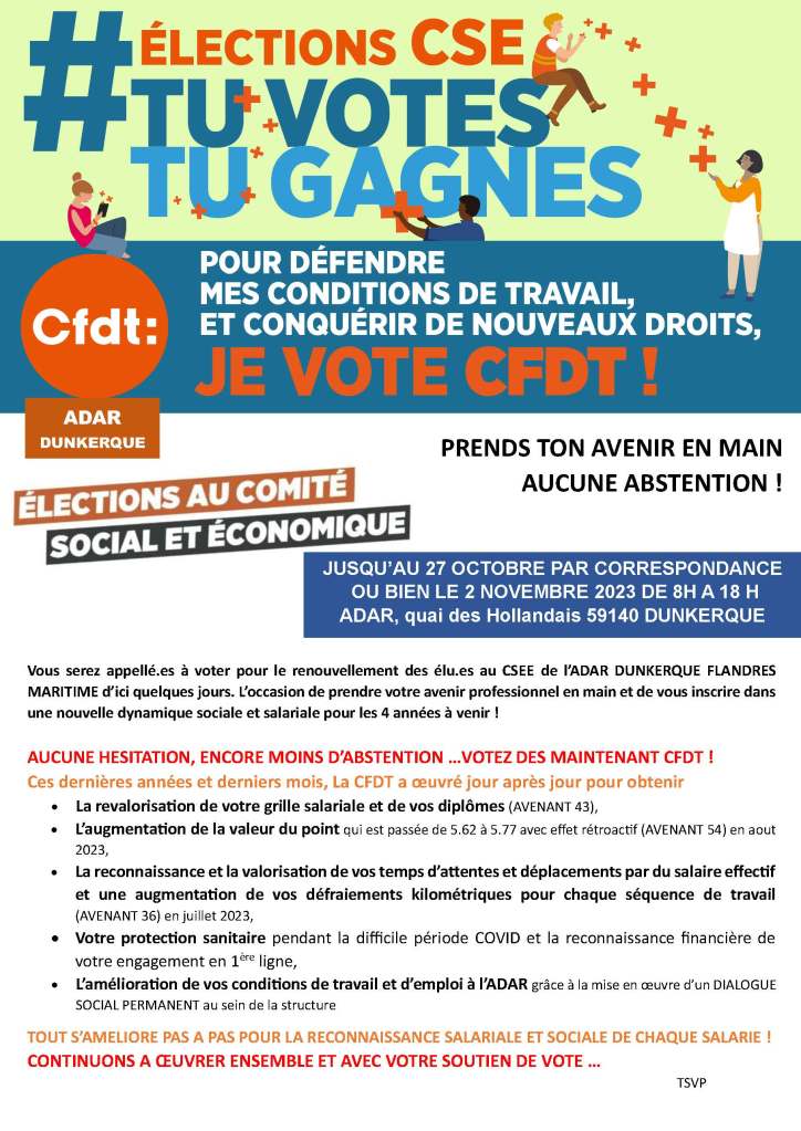 Vous serez appellé.es à voter pour le renouvellement des élu.es au CSEE de l’ADAR DUNKERQUE FLANDRES MARITIME.