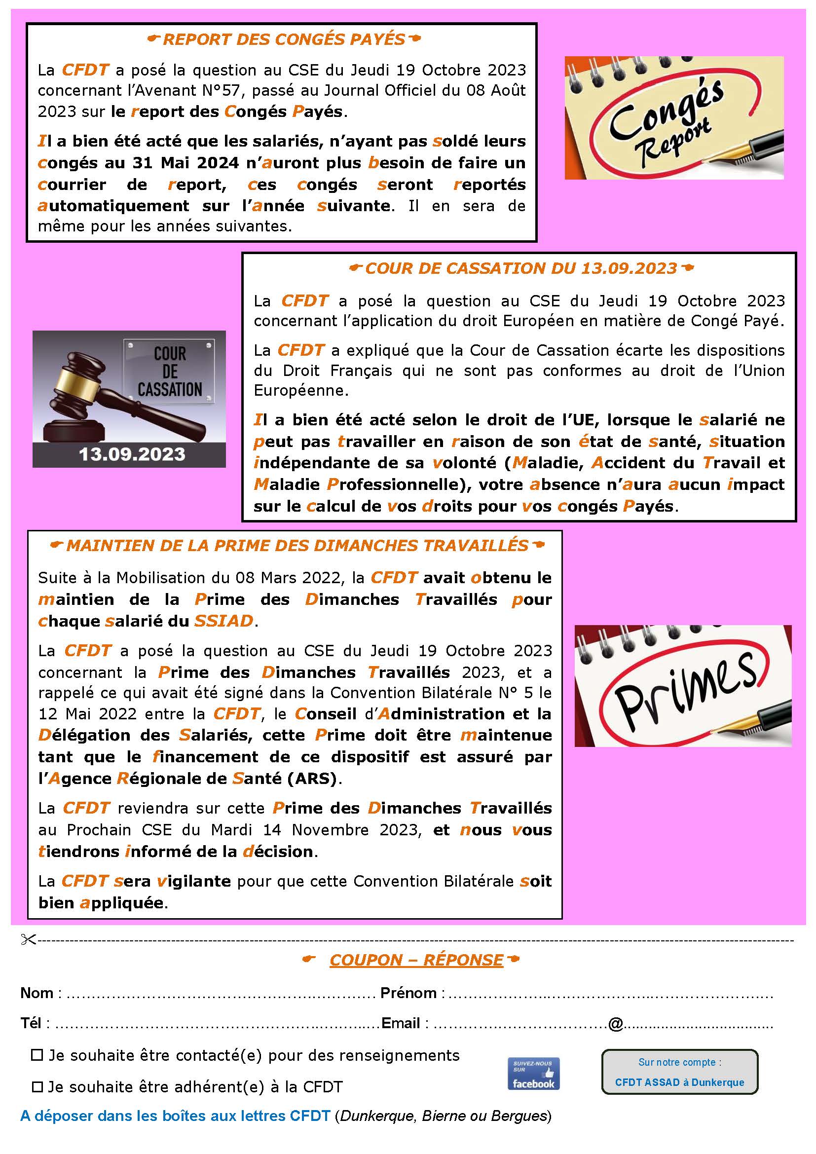 Les Élus CFDT et des Candidats sont allés à la Rencontre des Salariés pour expliquer ce qu’ils ont Obtenu pendant leur Mandat, et les Questions qu’ils ont posées au CSE du Jeudi 19 Octobre 2023.