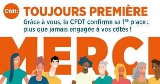 Merci encore pour la reconnaissance du travail effectué et d’avoir fait en sorte de maintenir la cfdt comme 1er syndicat dans notre association, …comptez sur nous pour être à la hauteur des attentes exprimées à l’occasion de ce 1er ( ..et seul et unique) tour de scrutin.