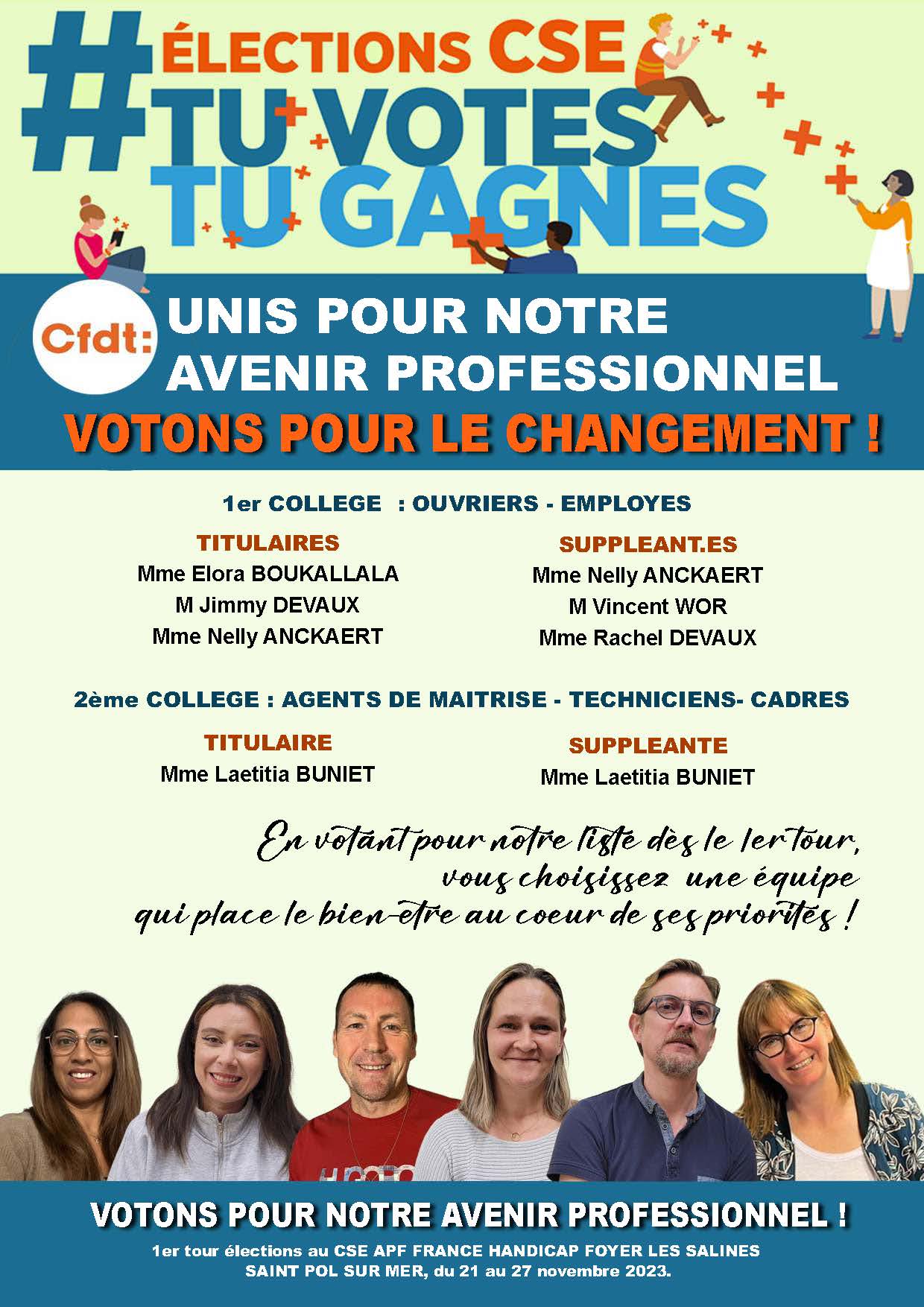APF : ÉLECTIONS AU CSE APF FRANCE HANDICAP LES SALINES