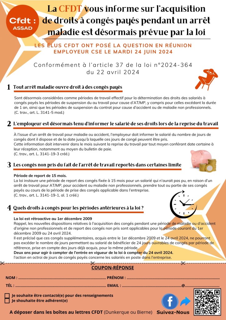 Les Elus CFDT-ASSAD vous informe sur l’Acquisition de Droits à Congés Payés pendant un Arrêt Maladie.
