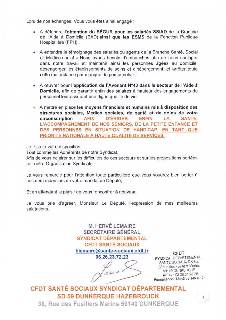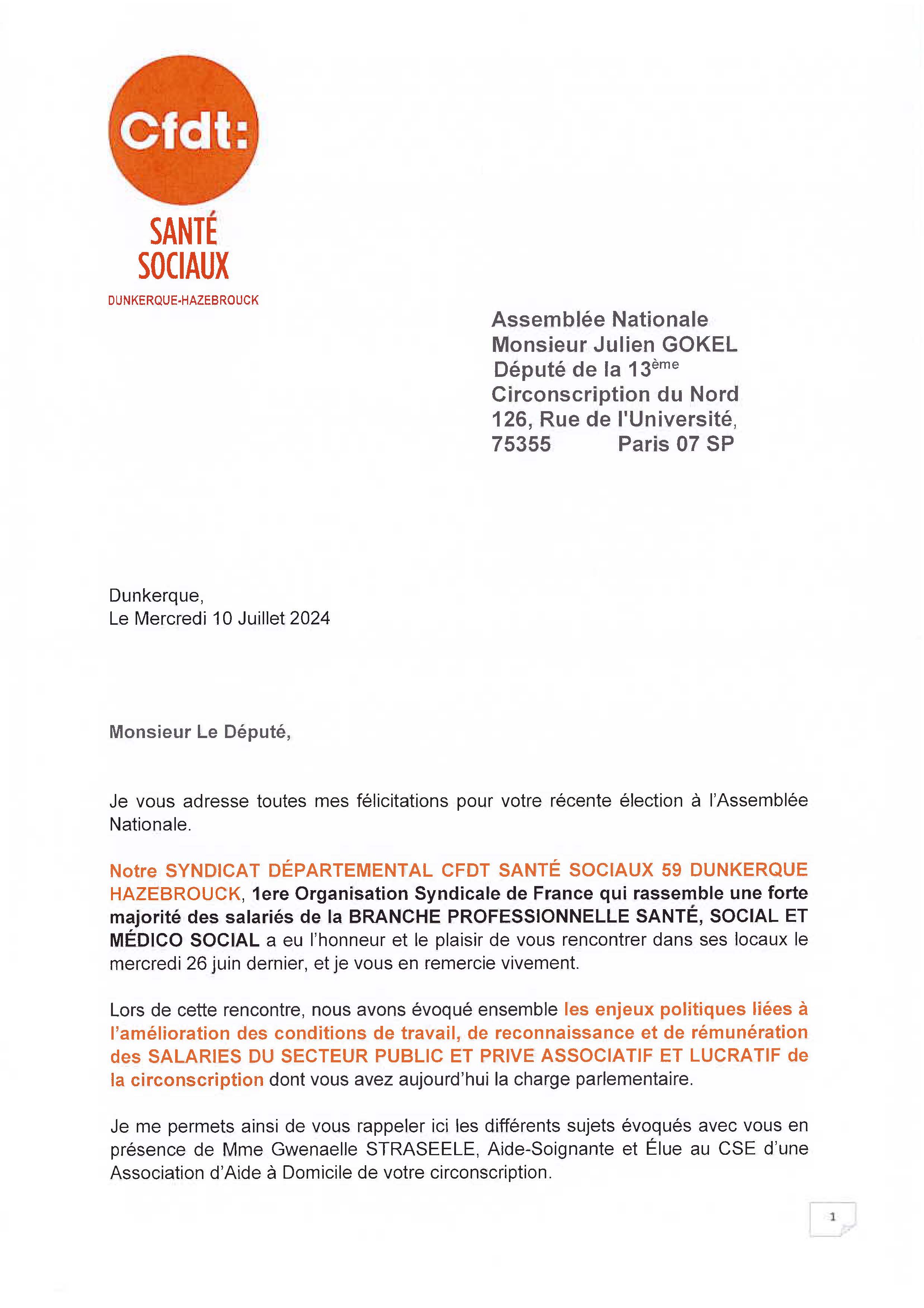 Veuillez trouver ci-dessous le courrier transmis ce jour (10.07.2024) a Monsieur Julien GOKEL, Député de la 13ème Circonscription du Nord.