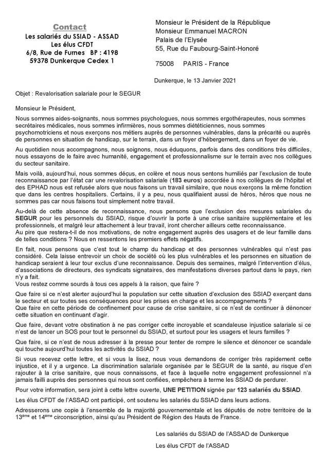 Courrier au Président de la République et Pétitions pour le SSIAD concernant la prime SEGUR