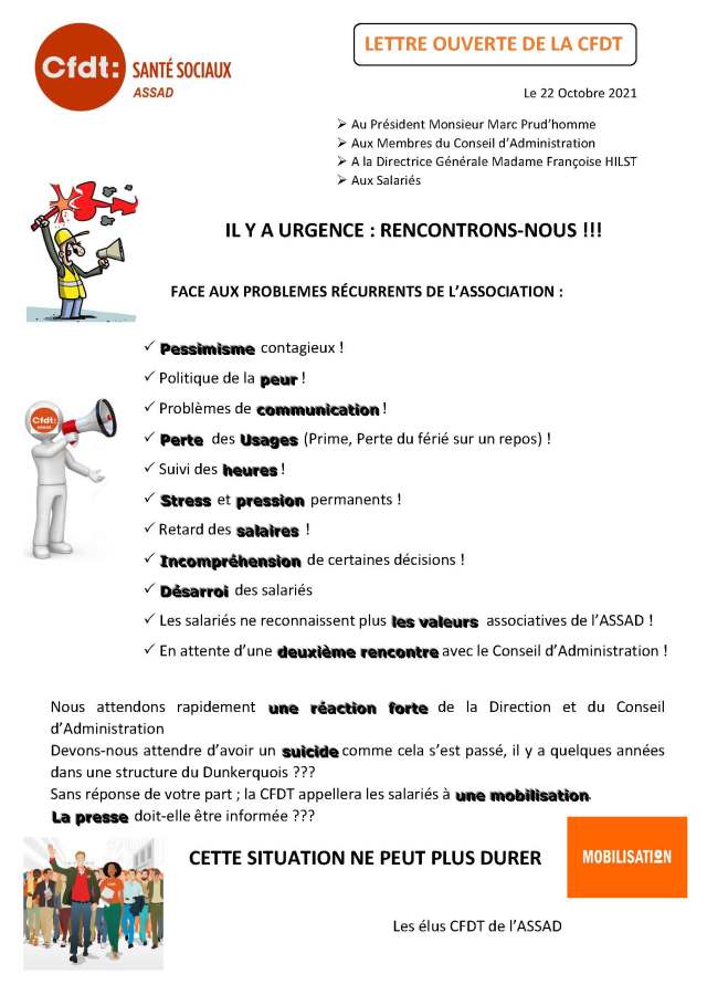 Lettre Ouverte des élus de la CFDT au Président, Conseil d’Administration, à la Directrice et aux Salariés
