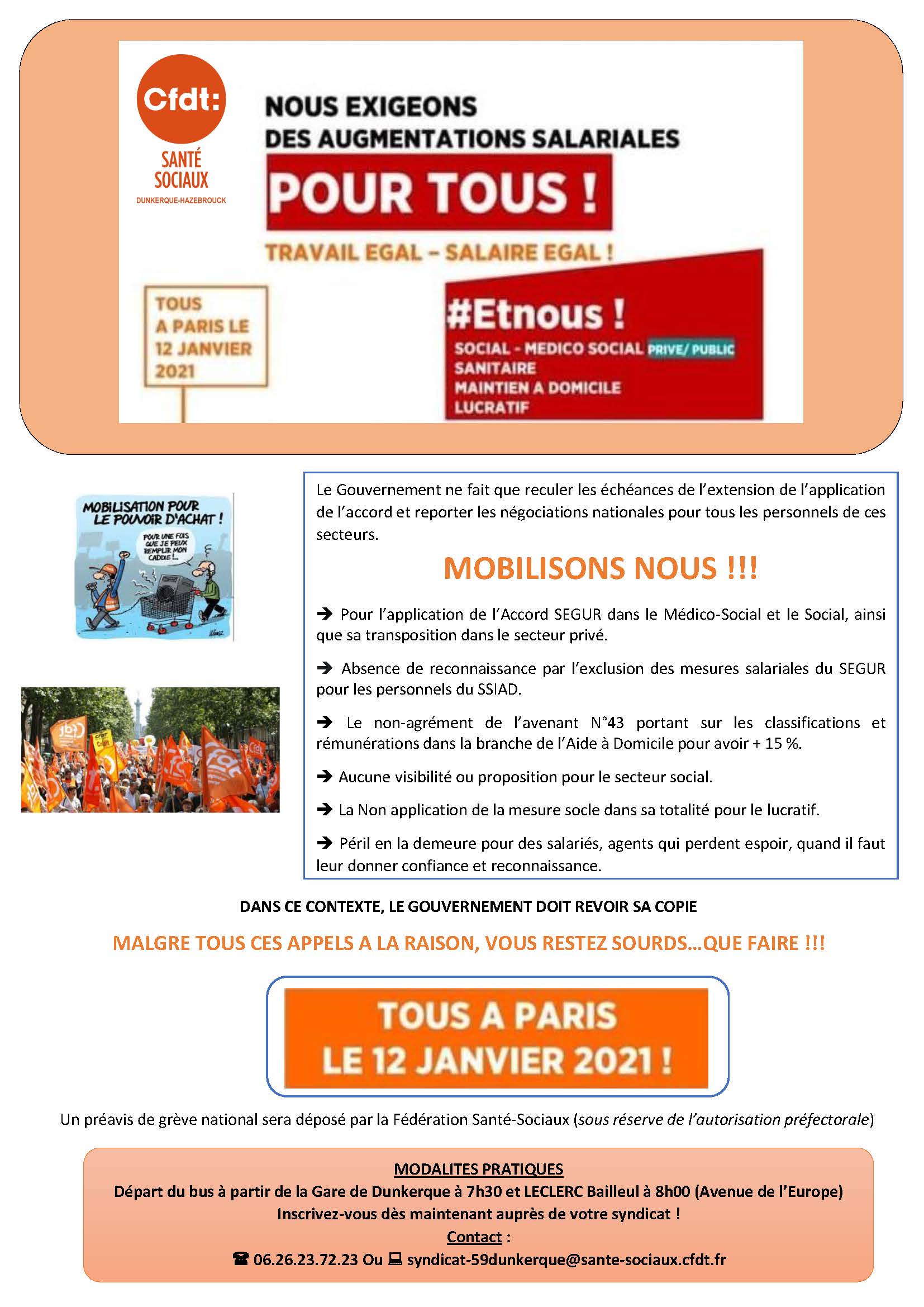 Mobilisation du 12 Janvier 2021 pour le Social – Medico Social – Sanitaire – Maintien a Domicile – Lucratif