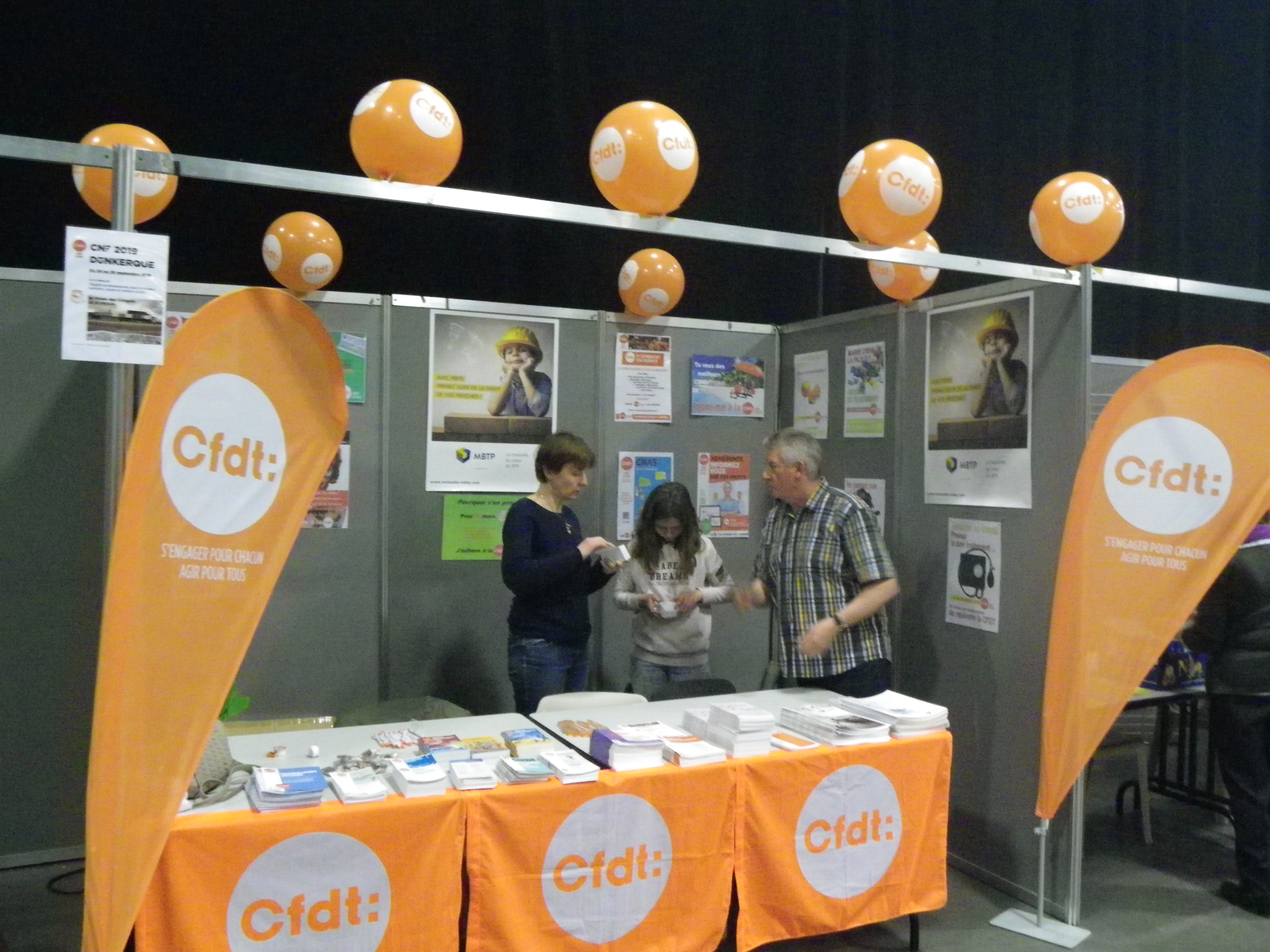Les Militants CFDT ont eu l’occasion de distribuer Stylos, Porte clés, clé USB, pochette, documents d’informations…. La couleur ORANGE dominait l’espace du Palais du Littoral.